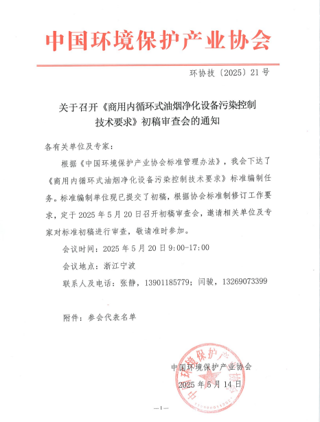 2025年5月20日,由中国环境保护产业协会牵头组织的《商用内循环式油烟净化设备污染控制技术要求》初稿审查会,在宁波方太集团顺利召开。作为商用厨房通风系统领域的标杆企业,MORK莫克(艾尔沃克旗下品牌)作为参编单位受邀参会,深度参与该行业标准的研讨与完善,用实操经验与技术积累为行业规范化发展注入专业力量。