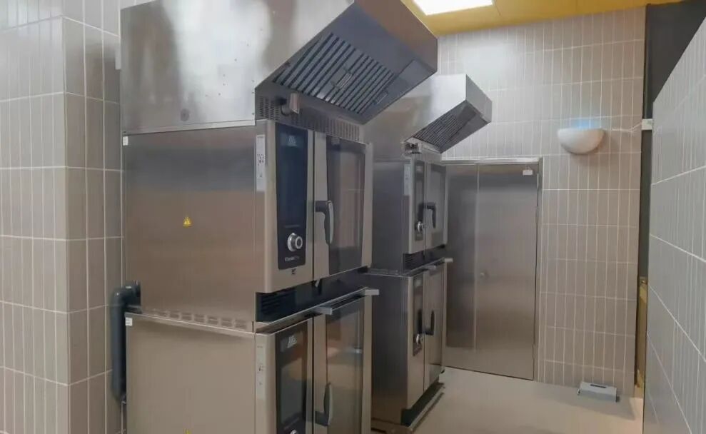 该国际连锁超市地处上海核心社区商圈,受建筑布局限制,无法铺设传统高空排烟管道,且商超内部对设备噪音、空间占用、能耗控制有着严格要求,传统油烟净化方案难以适配。针对这一痛点,MORK莫克为其定制设计了模块化室内直排净化方案,通过实地勘察、技术测算与反复调试,实现了油烟直接室内循环净化的治理目标。